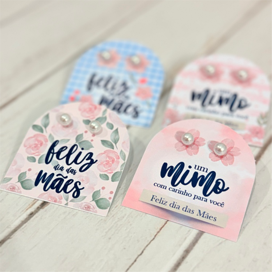 Demonstre todo o seu carinho com um toque de elegância: mimo card com mensagem + brinco de pérolas para uma mãe inesquecível